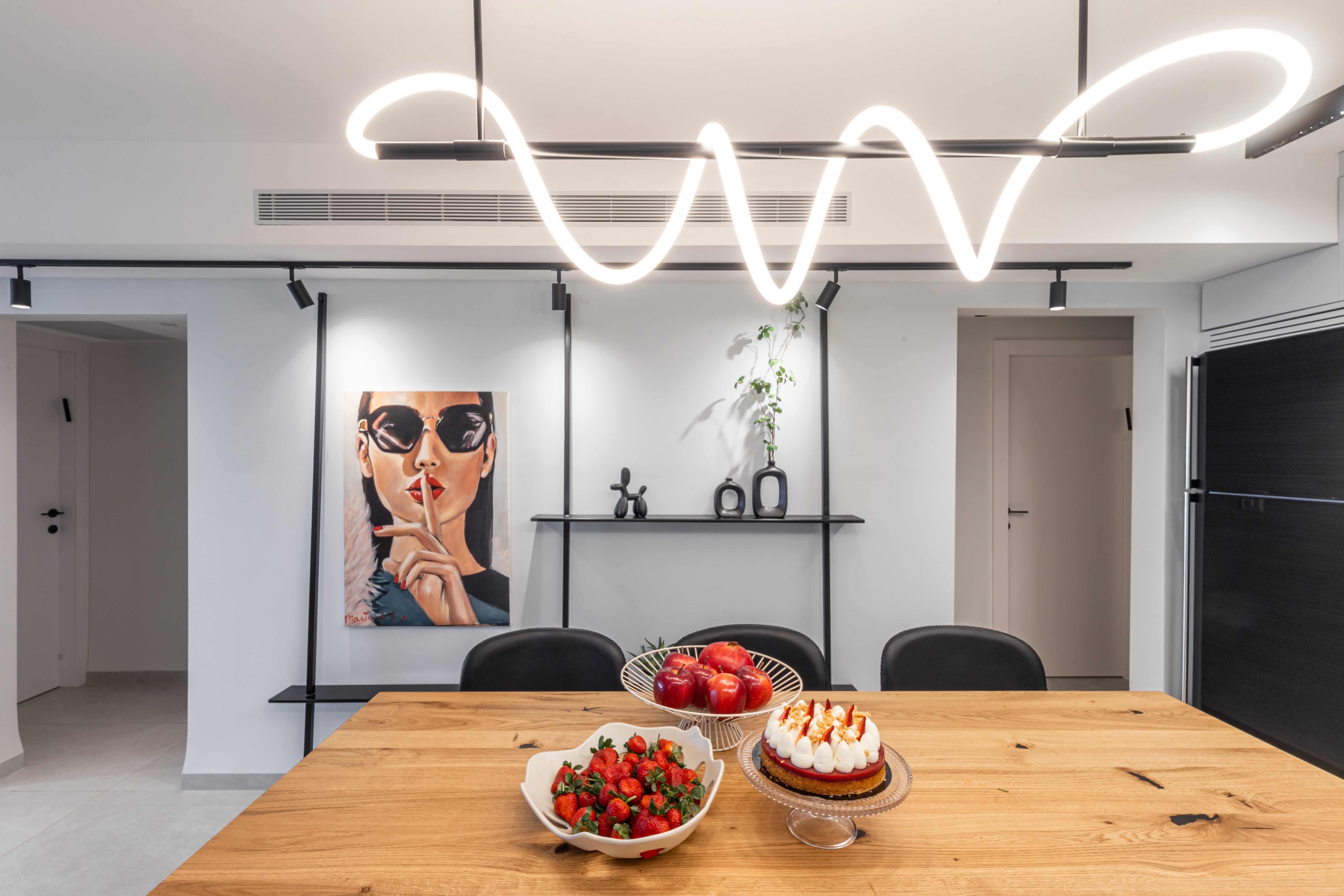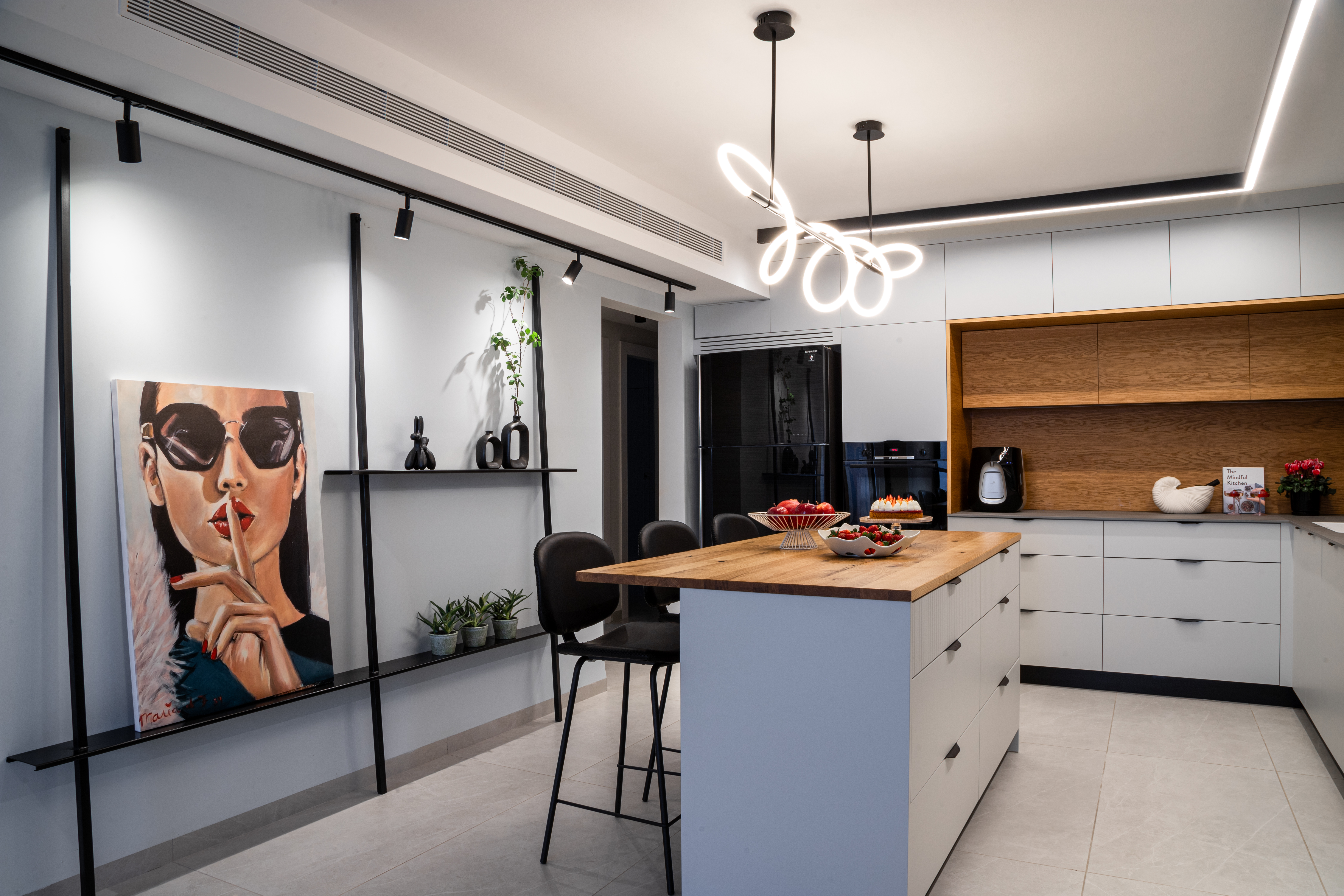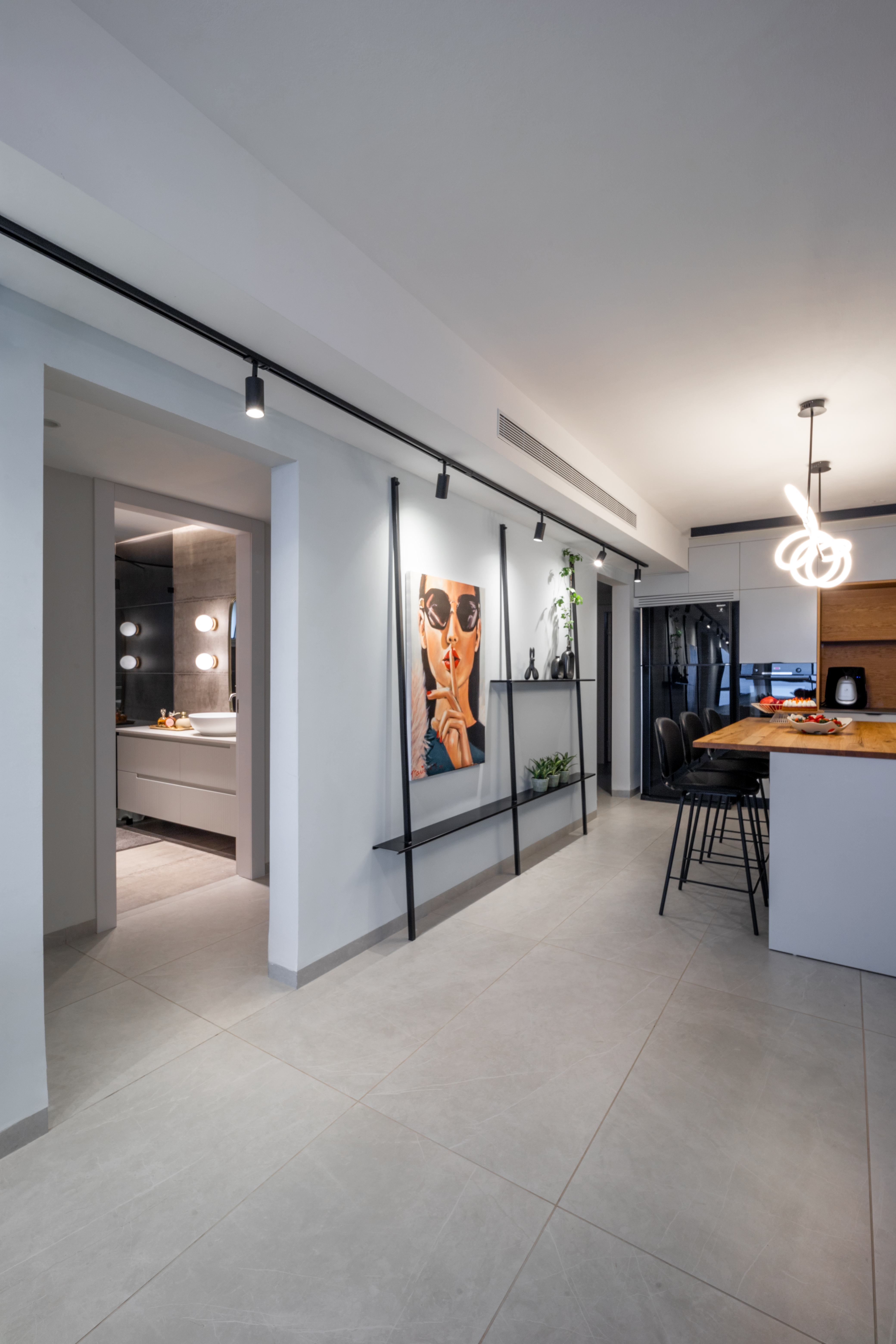 הבקשה המרכזית של הלקוחה הייתה לחדר את כלל התשתיות בבית וליצור תכנון חדש המתאים לסגנון החיים שלה, עם תחושת מרחב, אור טבעי ושימוש פונקציונלי במרחבים השונים. התוצאה היא דירה מוארת ונקייה, שזורמת בצורה אורגנית ומעניקה תחושה של בית פרטי בתוך בניין מגורים.