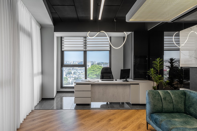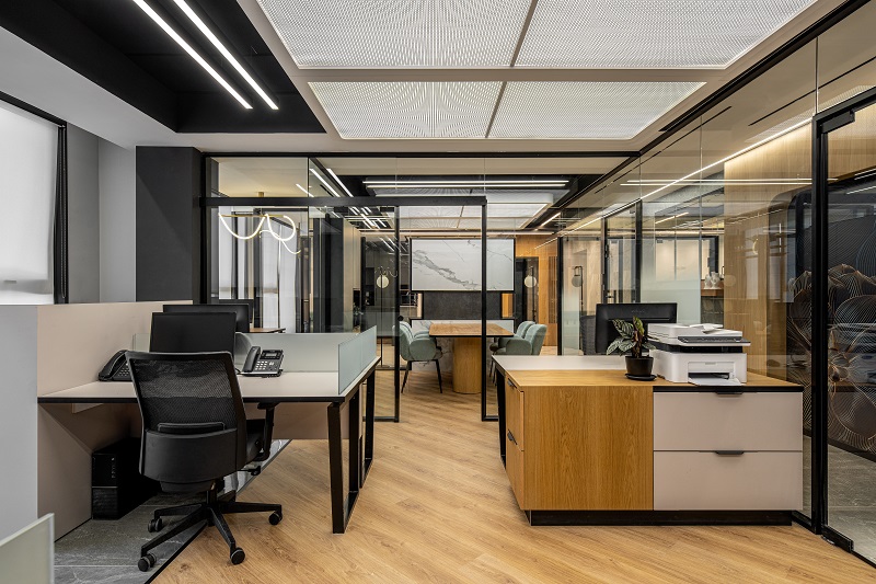 המשרדים כוללים משרד מרכזי עם עמדות עבודה, ומשרד פרטי לבעלים.